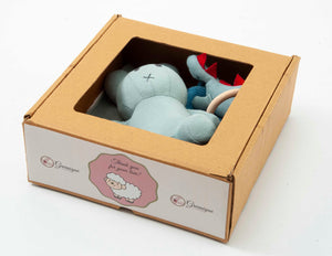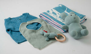 • Includes a blanket, cardigan, muslin bib, rabbit, and dino rattle.